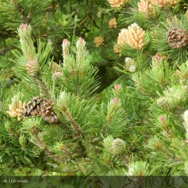 Conifère nain compact, dense, d'un joli vert vif à vert foncé. Cônes ovoïdes bruns. Pour rocaille. Conifère nain compact, dense, d'un...