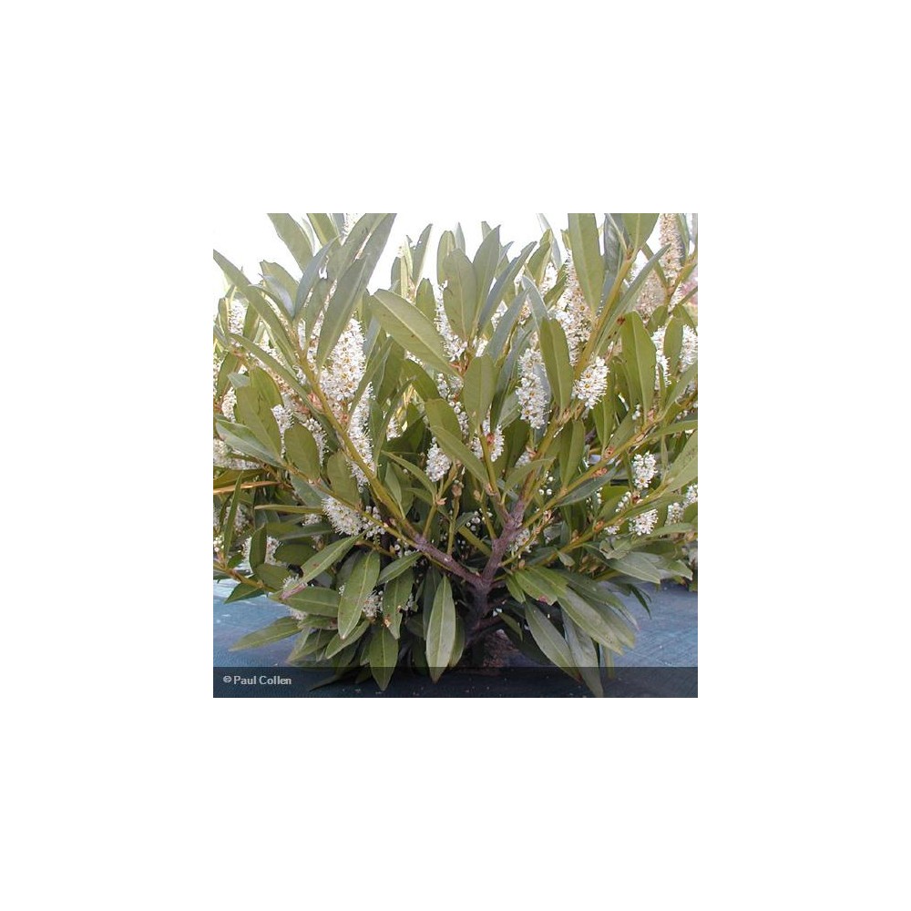 | Description | Petite taille. Port étalé. Beau feuillage vigoureux, compact et persistant, vert foncé laqué. Abondante floraison de grappes de fleurs parfumées blanc crème suivie de fruits rouges devenant noirs à maturité. |