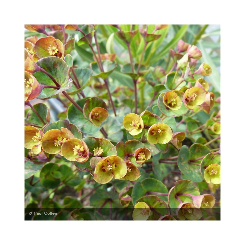 | Description | Port compact, en boule. Floraison jaune et pourpre avec un pédoncule rouge. Remarquable jeune feuillage pourpre profond persistant devenant vert bronze par la suite. |